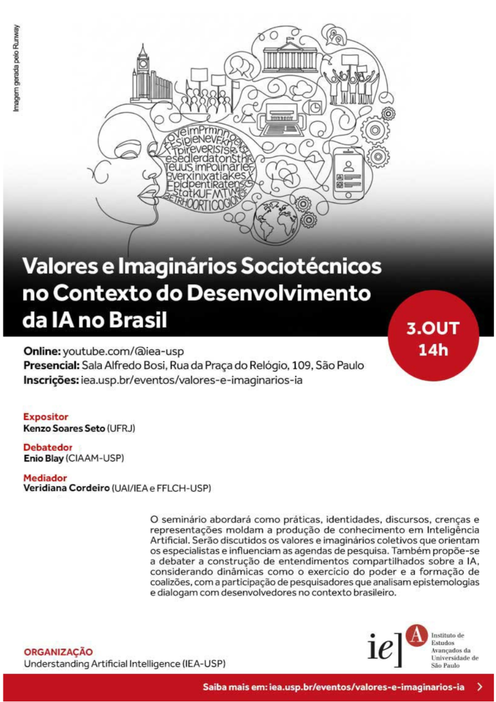 Resumo :O seminário visa debater os elementos sociais - práticas, identidades, discursos, crenças e representações - que estruturam a produção de conhecimento em Inteligência Artificial. Os valores e imaginários coletivos formadores da mentalidade dos especialistas influenciam as atividades e as agendas de pesquisa. Os caminhos para descobertas e avanços na área não são independentes da cultura, mas sim co-produzidos com ela: há uma relação de interdependência entre a manifestação material da tecnologia e a interpretação que os agentes fazem das formas de vida social. Nesse sentido, o seminário propõe discutir a construção dos entendimentos compartilhados (pela via do exercício do poder, da formação de coalizões, entre outros processos) enquanto um elemento chave para a compreensão dos futuros possíveis da IA, trazendo para o debate pesquisadores que têm contribuído com o tema por meio da análise de epistemologias e da interlocução com os desenvolvedores de IA no contexto brasileiro.